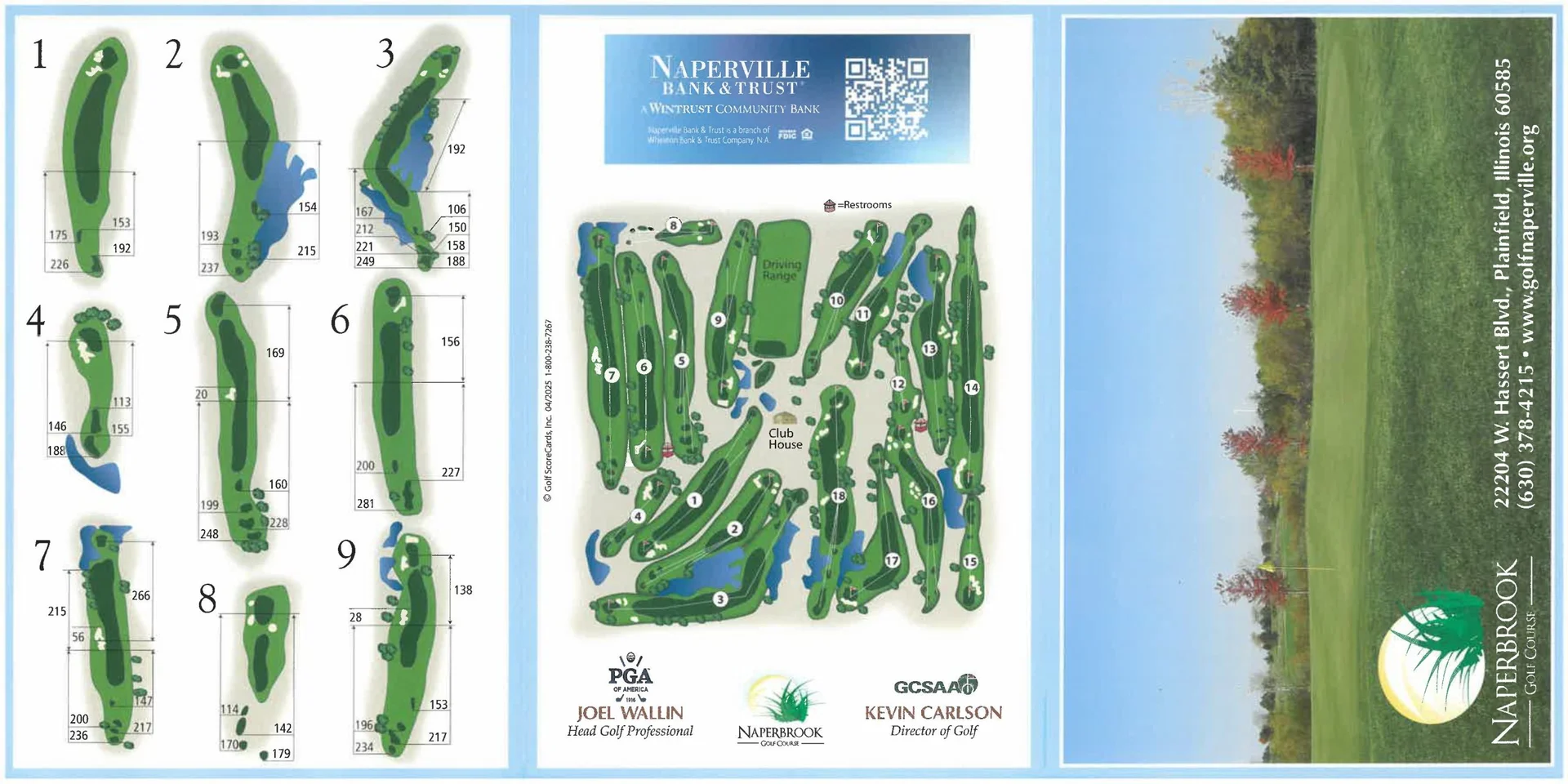 Located in northwest unincorporated Plainfield, scenic Naperbrook Golf Course is a “links-style” course, carved out of good Illinois farmland. It features rolling hills, native prairie grasses and 10 ponds throughout the 6,755 yard, par 72 challenge with four sets of tees, large greens, one double green, hidden bunkers and wide fairways. Additional amenities include a 10-acre driving range, separate lesson tee and 10,000 and 3,000 square foot practice putting greens.