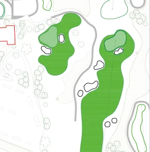 Construction is expected to be complete this month on the new practice area and realignment of the 18th hole. Crews are laying sod this week and installing the Better Billy Bunker system for the new practice green and #18 fairway bunkers.