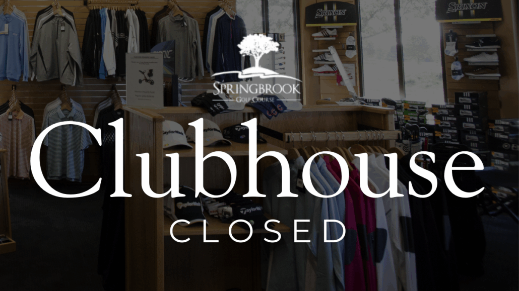 The clubhouse at Springbrook Golf Course will be closed for several weeks to allow work to be completed in the clubhouse interior. During this time, the golf shop at Naperbrook remains open for business.