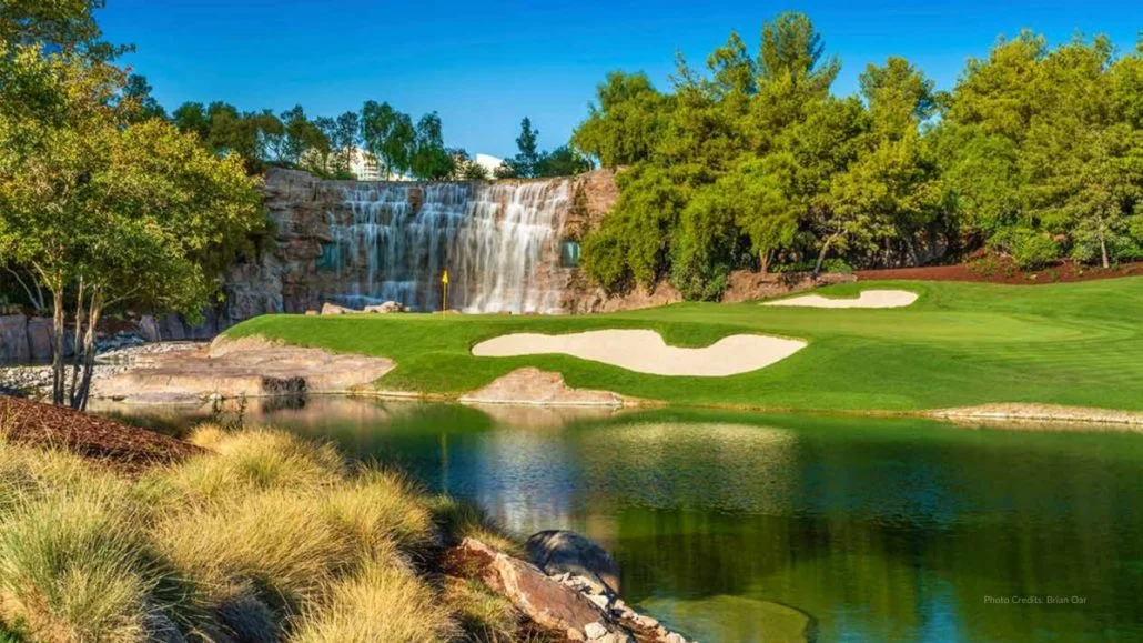 Though the rebuilt course has new greens and fairways and eight entirely new holes, it covers mostly the same footprint as its predecessor, and it preserves elements from its past, including more than 120 mature trees that date to the days of the Desert Inn. A dramatic waterfall still flows behind the 18th green, just as it did on the original Wynn course, though the hole, once a par-4, now plays as a par-3. Though Bryson and Brooks won’t be playing all 18 (theirs will be a 12-hole match, on a yet-to-be specified routing), you can bet they’ll be playing the closer. It’s just too much of a Vegas spectacle to omit.